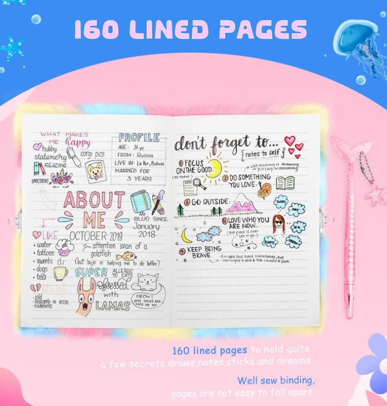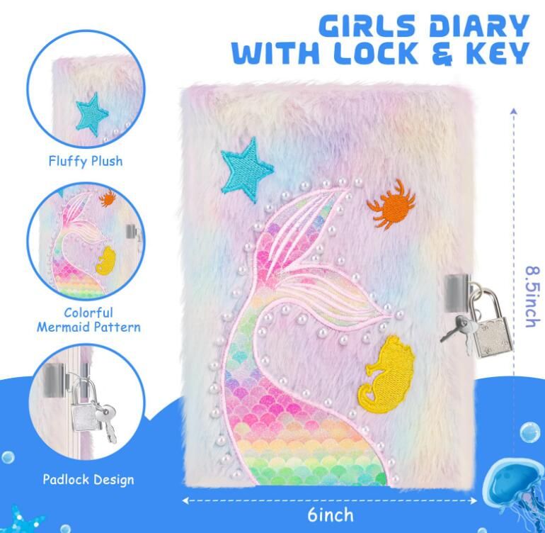 Diary with Lock: the mermaid notebook with lock can protect children's privacy and provide them with a secure private space. Use notebooks to store precious moments in life or fun things at school. It is a good companion for you.